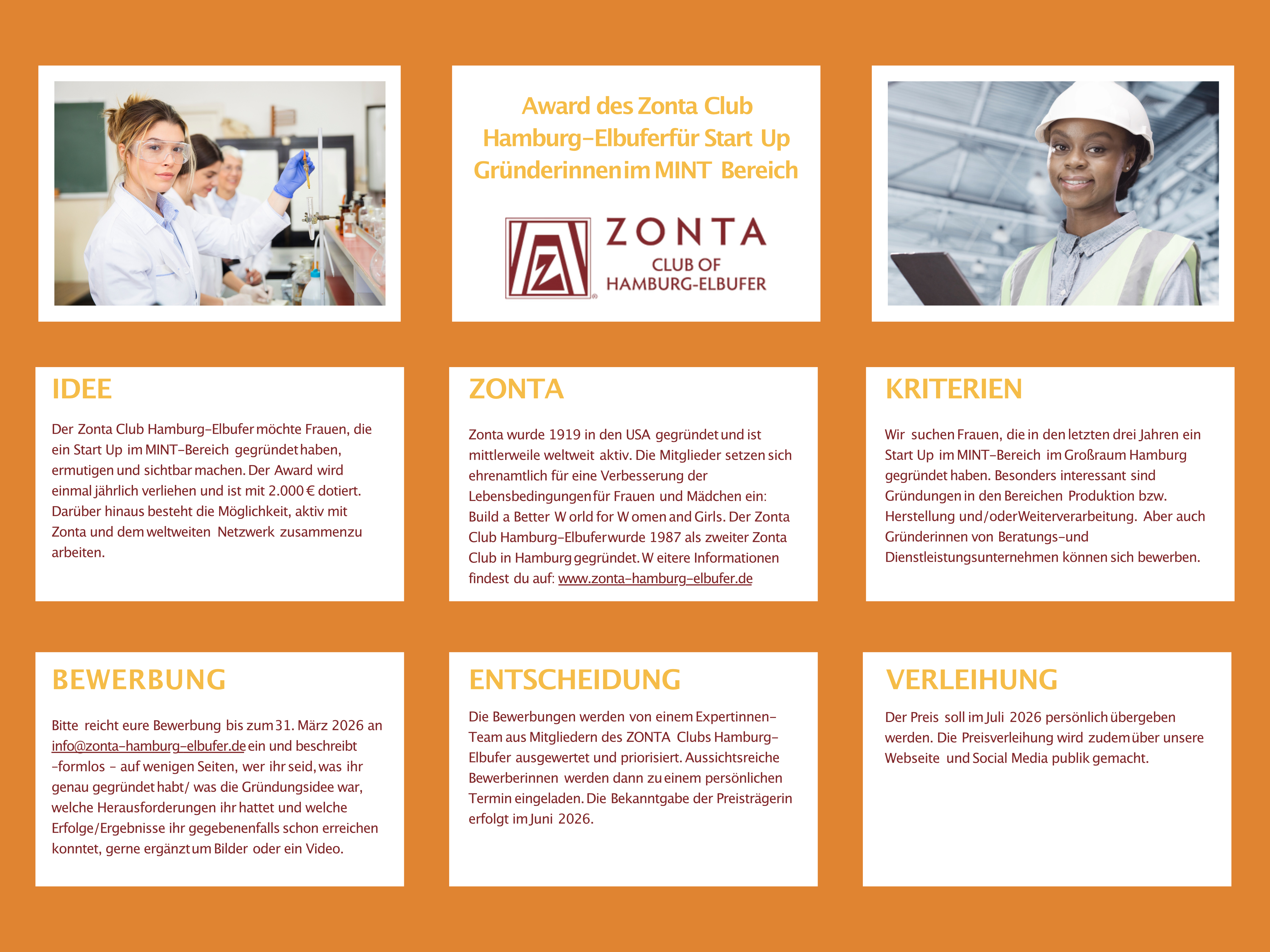 Die Unterlagen werden von einem Experten Team aus Mitgliedern des ZONTA Clubs Hamburg Elbufer ausgewertet und priorisiert. Aussichtsreiche Bewerberinnen werden alsdann zum einem persönlichen Termin eingeladen. Die Bekanntgabe des Awards erfolgt im Juni 2025.